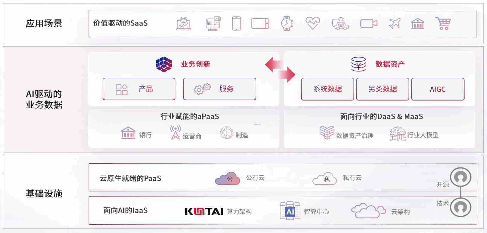 数字时代,,,,围绕企业数字化转型的关键要素,,,,菠菜导航数码开创性的提出数云融合战略和技术体系框架,,着力在云原生、、、数字原生、、、AI原生和信创产业上架构产品和服务能力,,为处在不同数字化转型阶段的快消零售、、、汽车、、、金融、、、医疗、、、政企、、、、教育、、、运营商等行业客户提供泛在的敏捷IT能力和融合的数据驱动能力,,构建跨界融合创新的数字业务场景和新业务模式,,,,助力企业级客户建立面向未来的核心能力和竞争优势,,,,全面推动社会的数字化、、智能化转型升级。。。